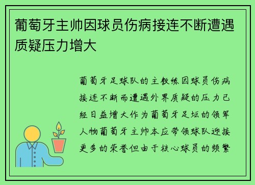 葡萄牙足球队的主教练因球员伤病接连不断而...